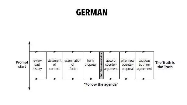 德国人:严谨规范,除了看产品外,会很坦率地给出提案,再不断的“交涉”后达成共识。典型的“按流程”办事,因此和德国人做交易,最好用产品和服务说话。