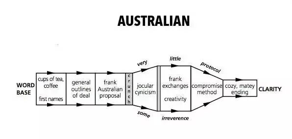 澳大利亚人:很率性。他们会给客户准备一些茶or咖啡,然后简要谈论交易,坦率提出自己的方案。谈判时以轻松的方式达成一致。