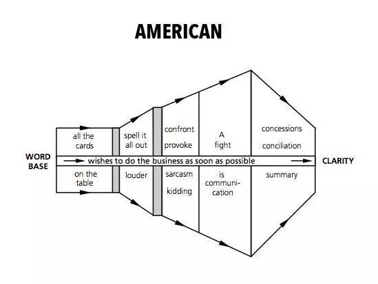 他们怎么做生意?Lewis经过大量研究,得出在全球贸易过程中,跟不同客户的沟通模式图和说明。