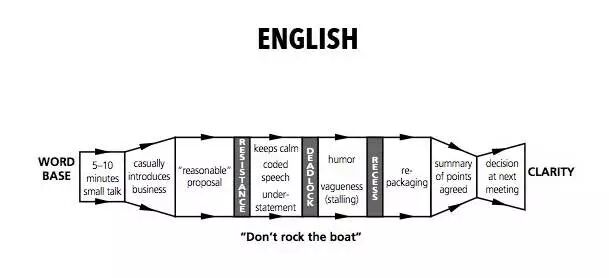 英国人:喜欢跟客户拉家常,然后以低调幽默的方式提出可行提案,不断复盘双方利益,但结果永远在“下次会议”中。